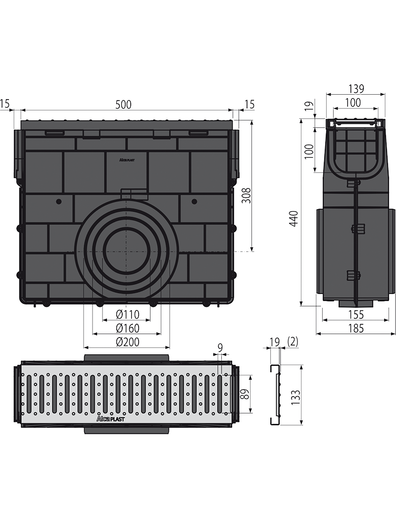 ALCA PLAST Пескоуловитель для дренажного канала AVZ102 с пластиково рамой и оцинкованной решеткой С-образного п