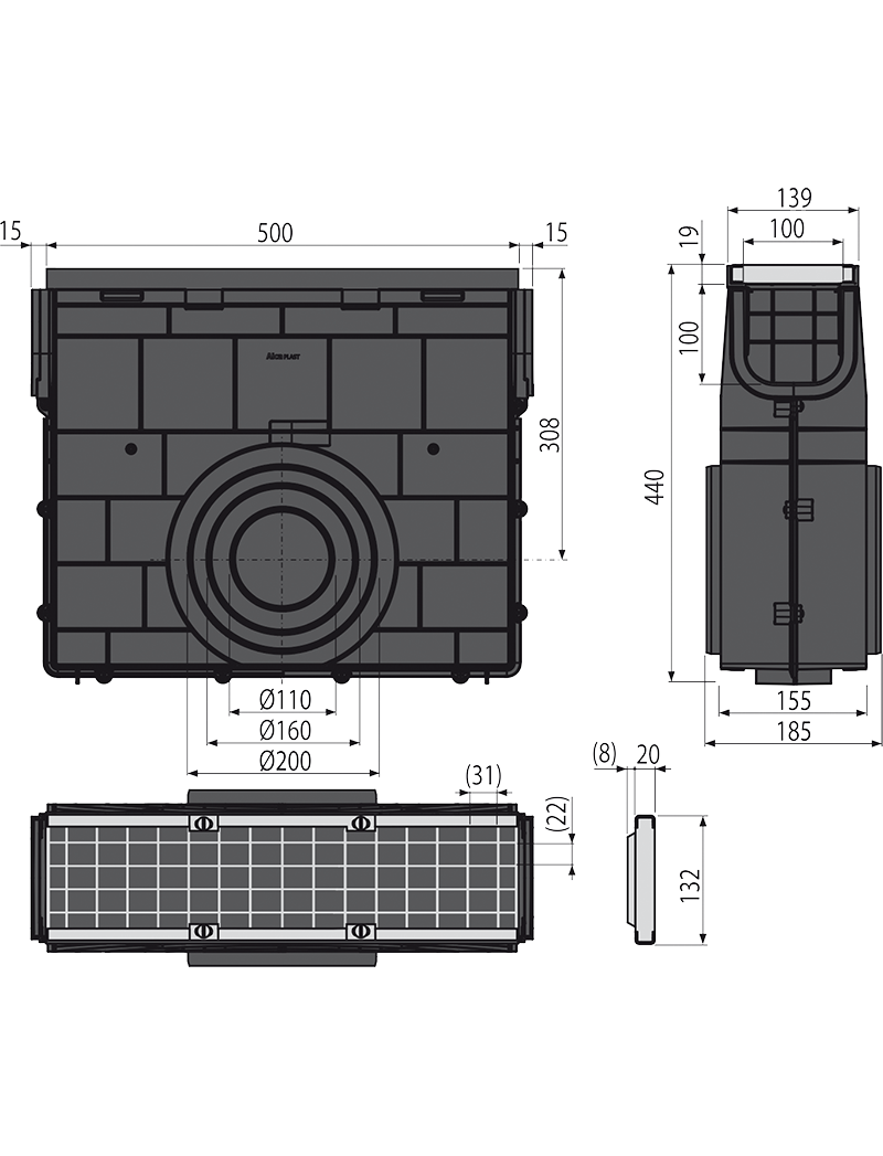 ALCA PLAST Пескоуловитель дренажного канала AVZ102 с пластиковой рамой и оцин.решеткой В125, арт.AVZ102R-R103S