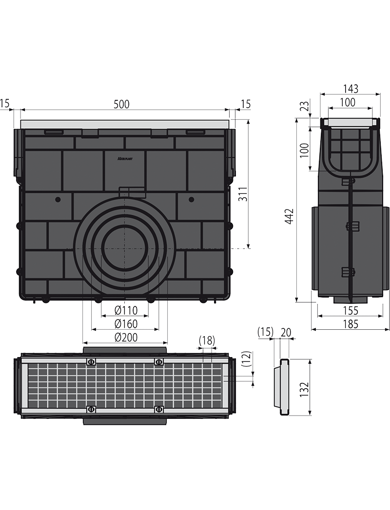 ALCA PLAST Пескоуловитель для дренажного канала AVZ103 с метеллической рамой и оцинкованной решеткой С250, арт.