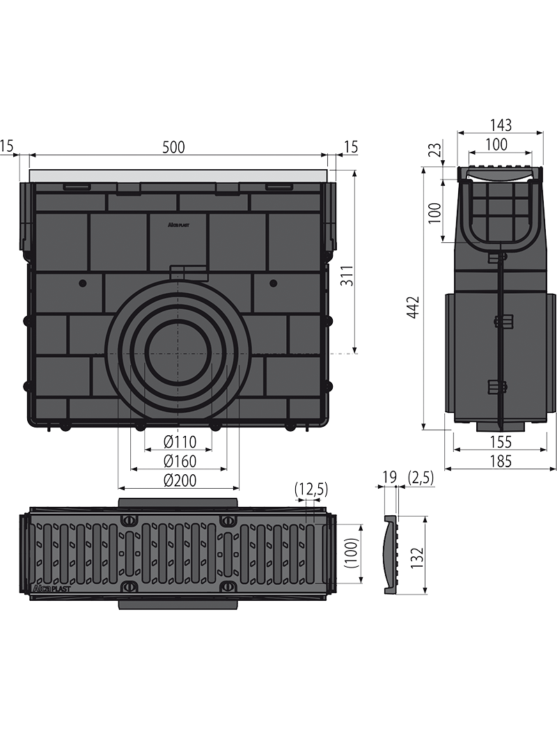 ALCA PLAST Пескоуловитель для дренажного канала AVZ103 с металлической рамой и чугунной решеткой С250, арт. AV