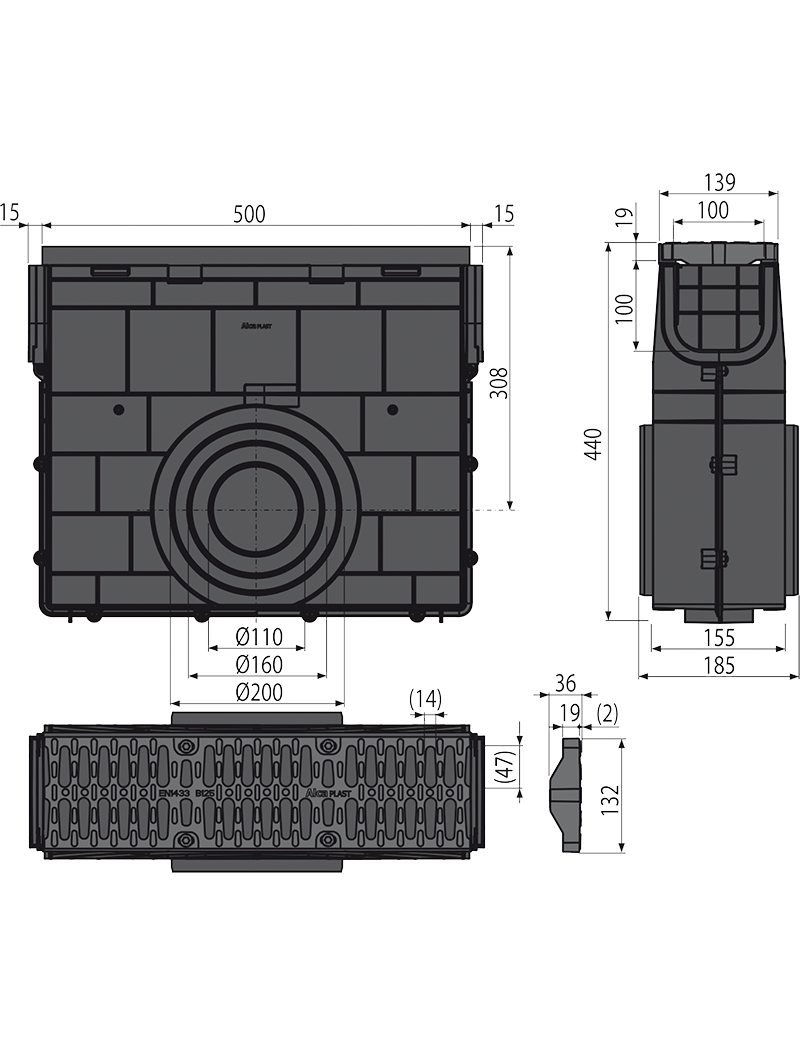 ALCA PLAST Пескоуловитель для дренажного канала AVZ104 с пластиковой рамой и решеткой из композитного материала