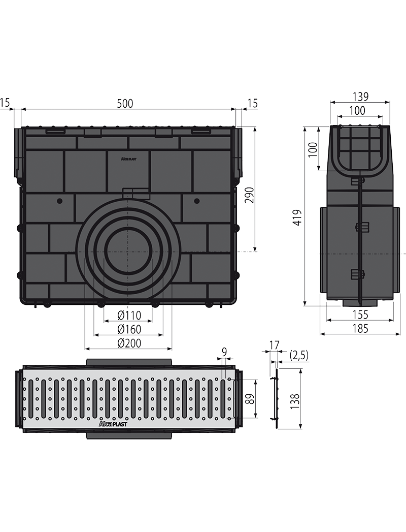 ALCA PLAST Пескоуловитель для дренажного каналаAVZ101-R121 с щелевой асимметричной надставкой из оцинкованной с