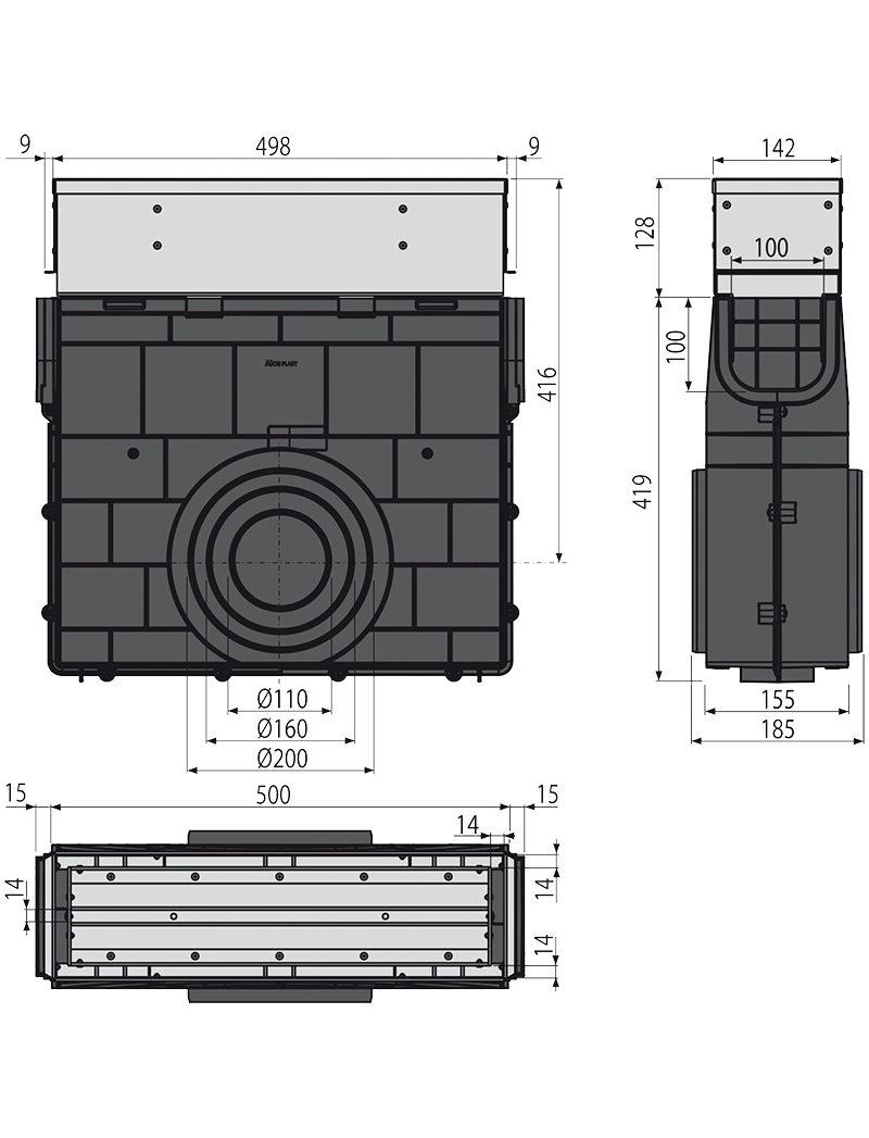 ALCA PLAST Пескоуловитель для дренажного каналаAVZ101-R322 с щелевой асимметричной надставкой из нержавеющей ст