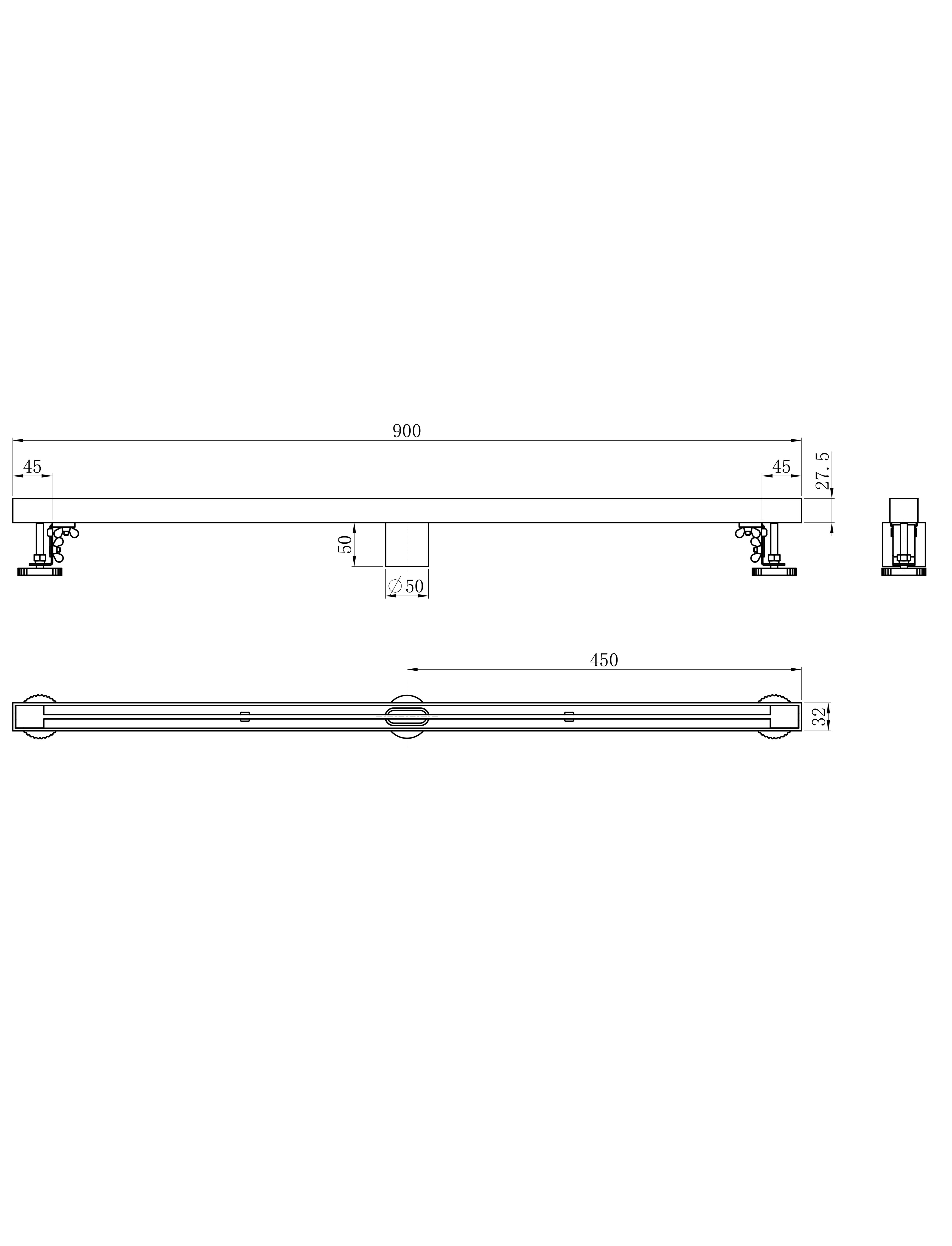 Душевой трап 90 см WONZON & WOGHAND, Темный графит (WW-65409T-GM)