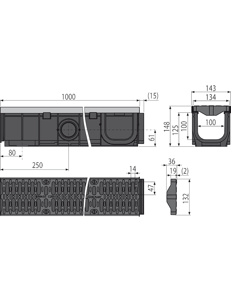 Класс нагрузки C250:25000 kgПрофиль профиль желоба:95,3 cm²