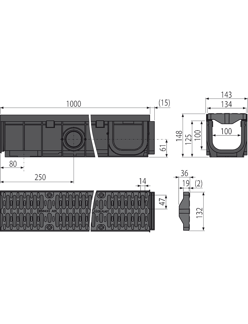 Класс нагрузки A15:1500 kgПрофиль профиль желоба:95,3 cm²
