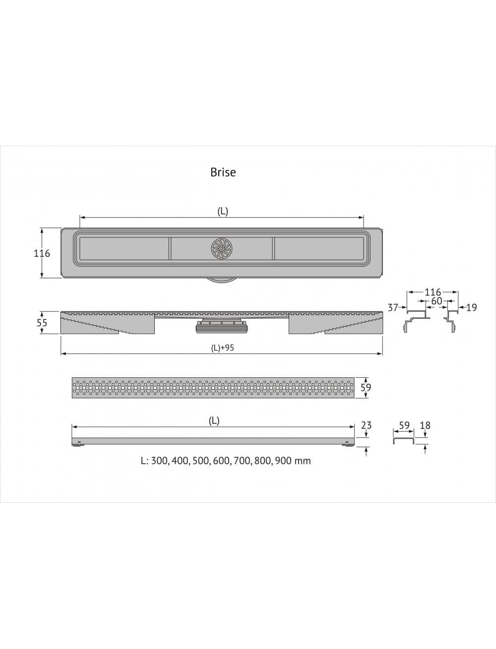 Желоб BERGES водосток C1 Brise 800, матовый хром, S-сифон D50/105 H50 вертикальный