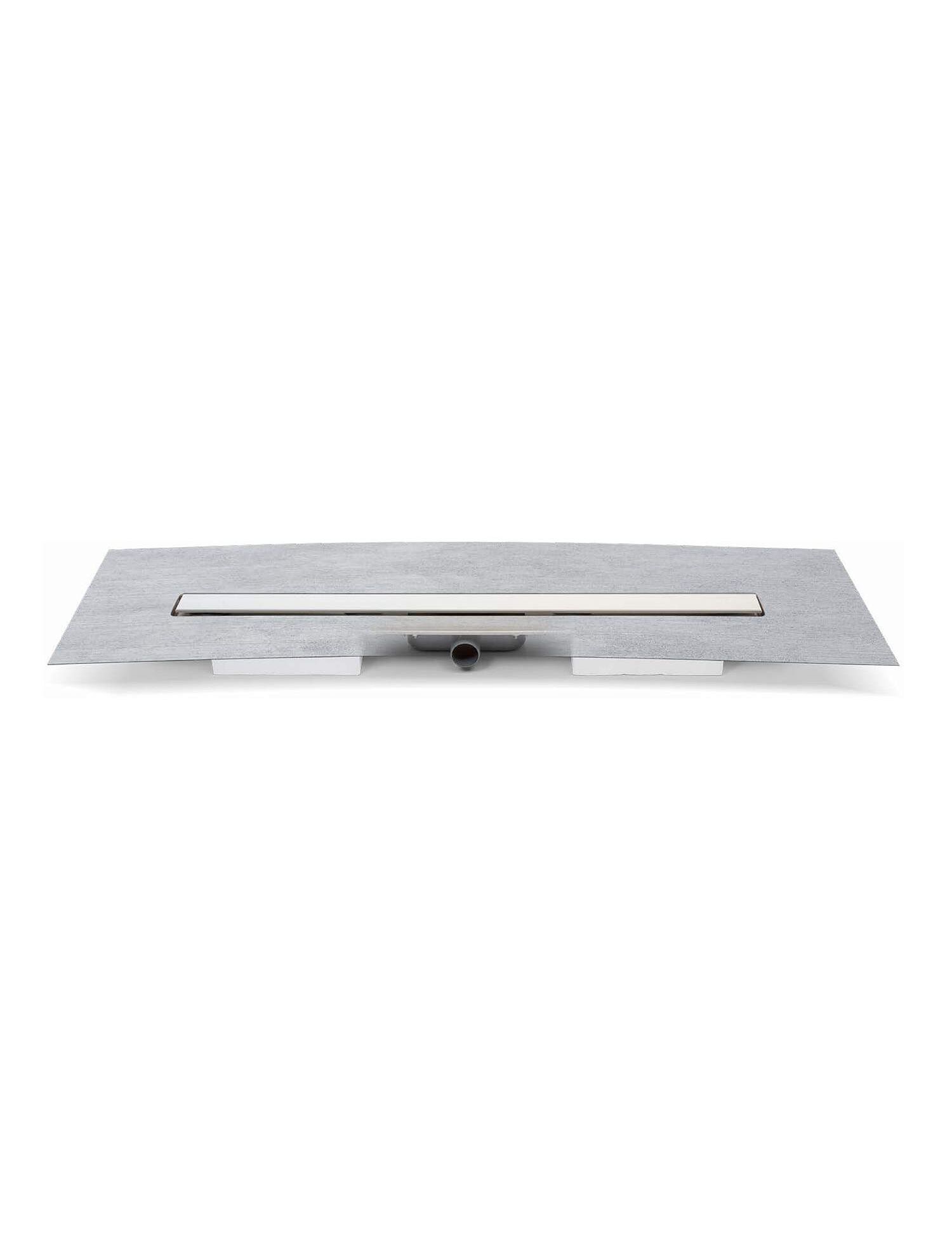 Водоотводящий желоб из нержавеющей стали с поворотным сифоном на 360°, сливом D50, профилем решетки ALU и гидроизоляционной пленкой 800мм
