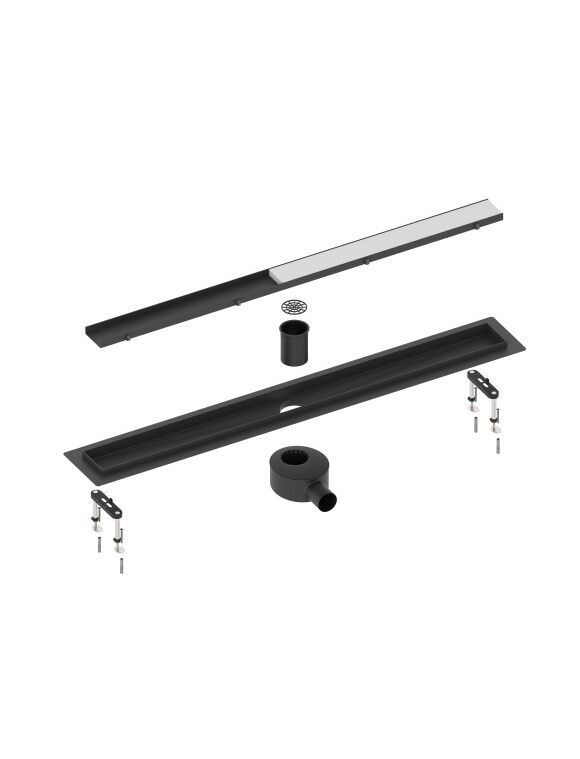 Душевой лоток TIMO Drain System 700 с двусторонней панелью "plate" под плитку, Чёрный