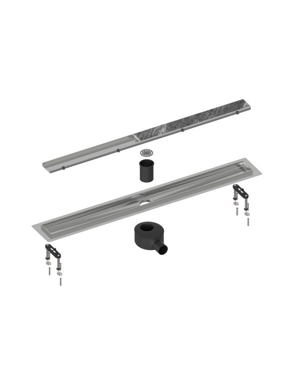 Душевой лоток TIMO Drain System 800 с двусторонней панелью "plate" под плитку, Сатин