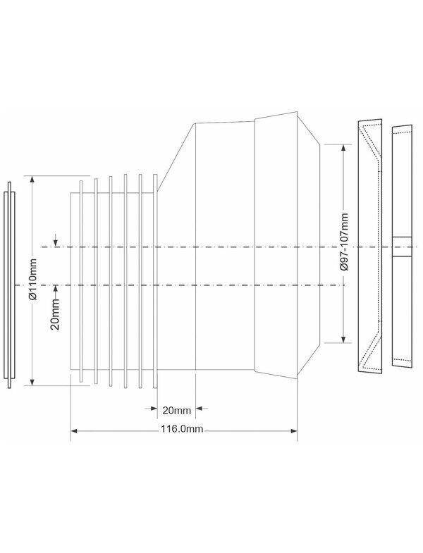Фановая труба (L116мм) с уплотнительной манжетой и 20мм смещением; вход на 97-107мм, выход вставляется внутрь 4"/110мм трубы