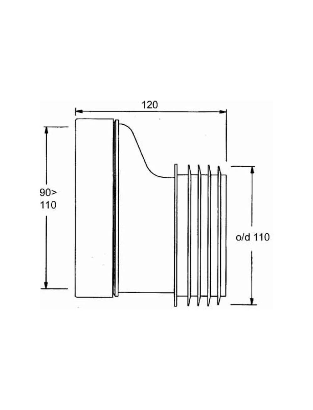 Фановая труба (L120мм) с прокладкой и 20мм смещением; вход на 90-110мм, выход вставляется внутрь 4"/110мм трубы
