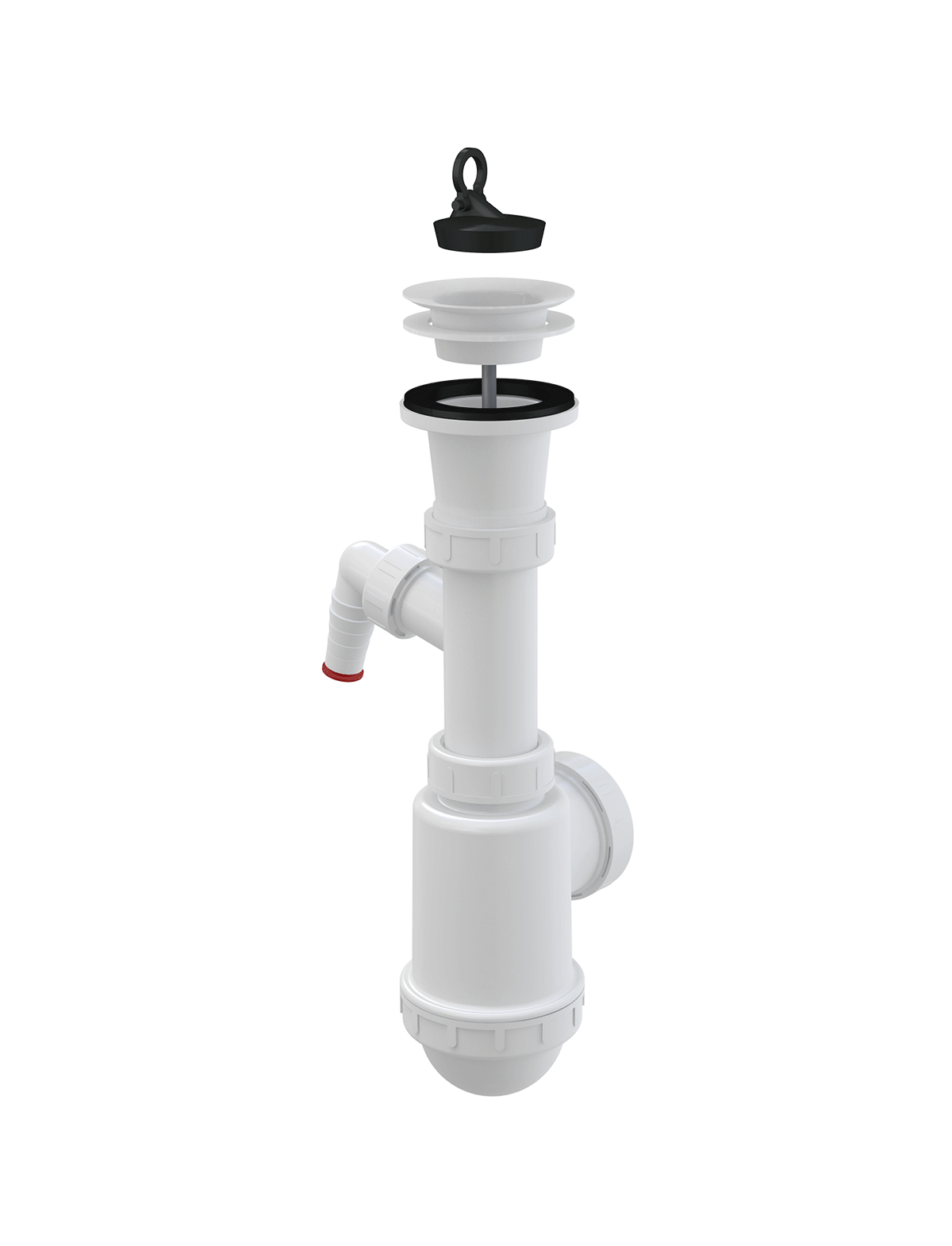 ALCA PLAST Cифон для мойки c пластмассовой решеткой Ø70 и подводкой, арт. A442P-DN50/40