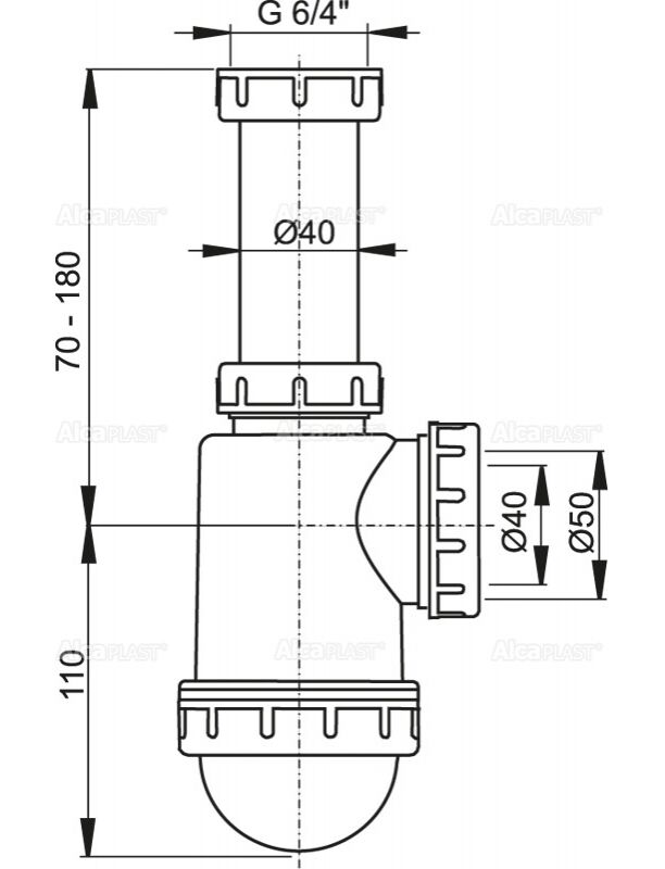 Сифон для кухонной мойки Alcadrain A443-DN50/40 Белый