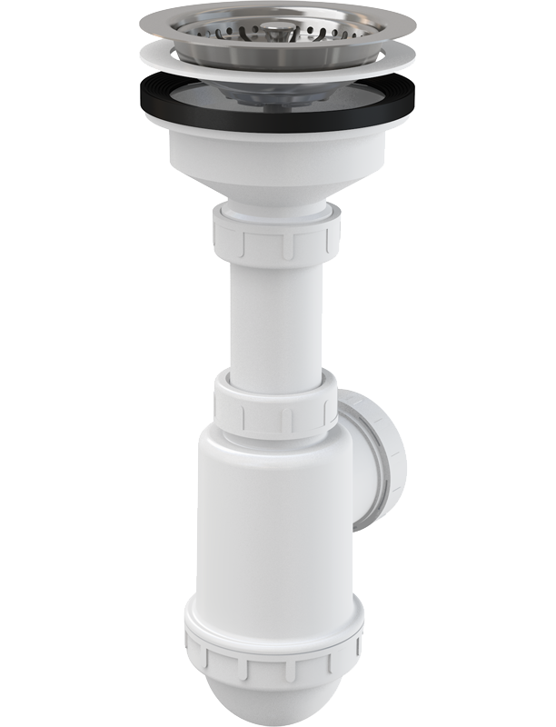 ALCA PLAST Сифон для мойки с нержавеющей peшeткой Ø115, арт. A446-DN50/40