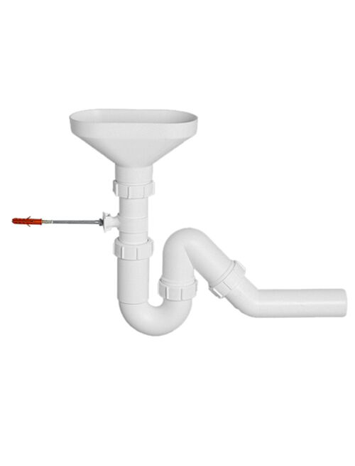 Сифон трубный Р/S-образный (1 1/2"х40мм) для разрыва потока/струи с овальной (170ммх85мм) приемной воронкой и универсальной отводной трубой D40мм; в комплекте крепеж к стене