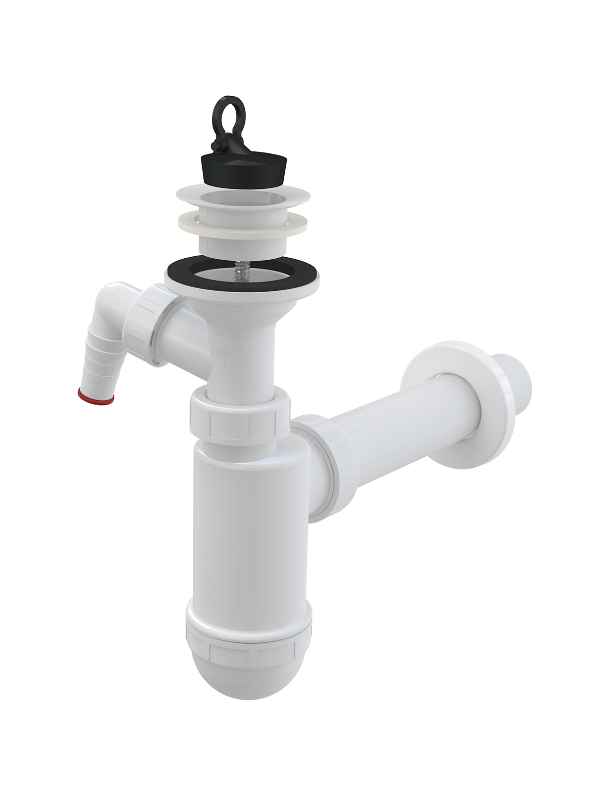 ALCA PLAST Сифон для умывальника Ø40 с подводкой и пластмассовой peшeткой Ø63, арт. A42P