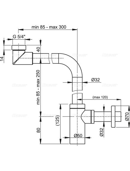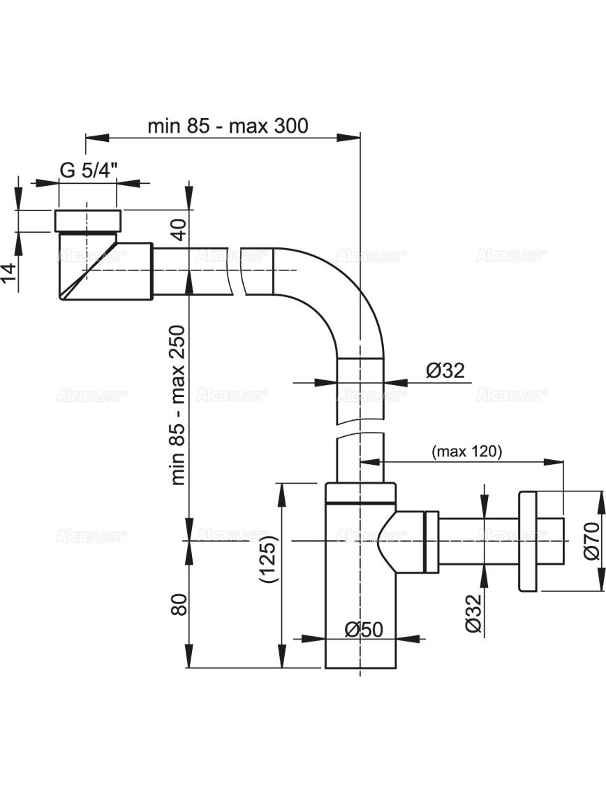 Сифон для умывальника O32 DESIGN, цельнометаллический, экономящий пространство.