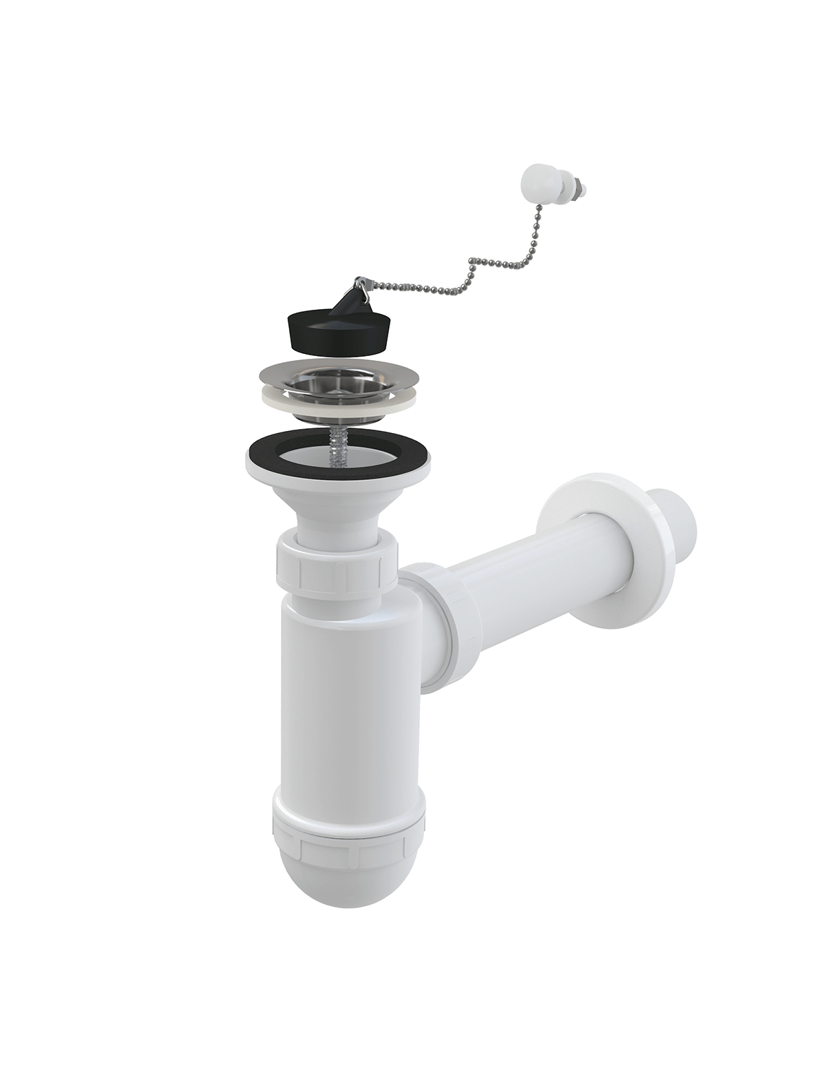 ALCA PLAST Сифон для умывальника Ø40 с нержавеющей peшeткой Ø63, с цепочкой, арт. A41R