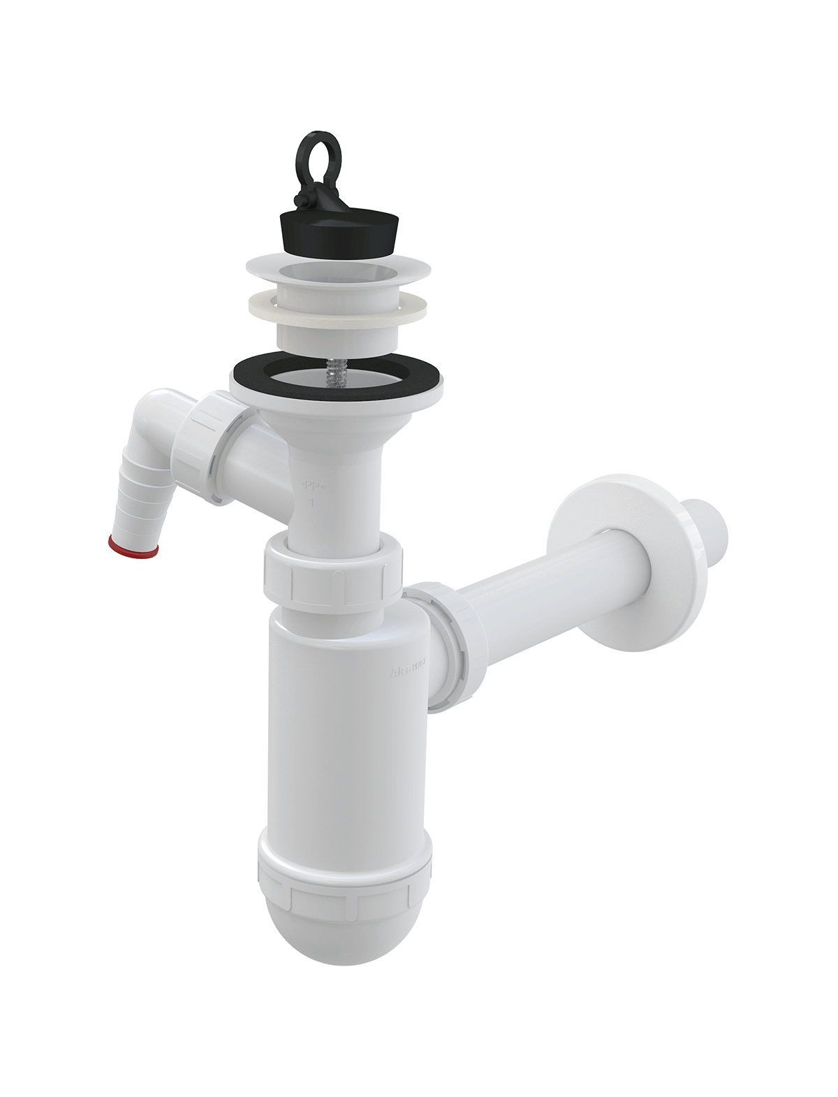 ALCA PLAST Сифон для умывальника Ø32 с подводкой и пластмассовой peшeткой Ø63, арт. A420P