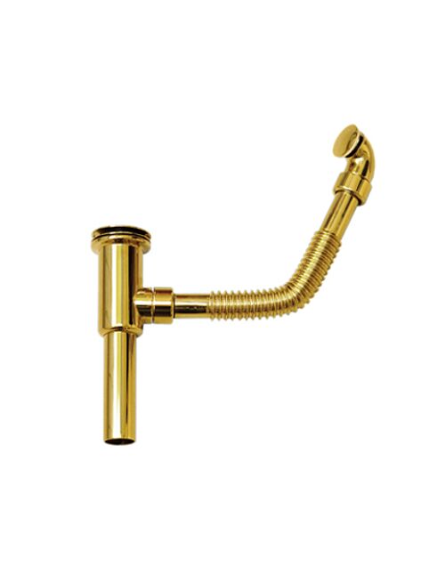 Слив-перелив (L280ммхD25мм, 60мм сливная решетка и пробка тип-"кнопка") латунный под круглое отверстие перелива; высота 220мм; выход Дн=32мм; цвет-золото
