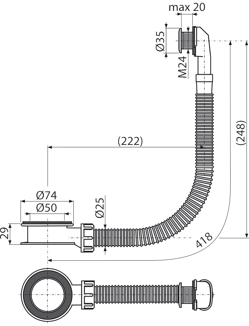 Слив-перелив для раковины Alcadrain A328CR Хром
