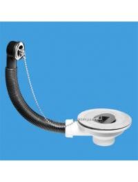 Слив-перелив под круглое отверстие перелива (L235ммхD25мм, 113мм нержавеющая решетка) с пробкой и цепочкой; выход 1 1/2"«папа»; цвет-хром