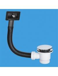 Слив-перелив под прямоугольное отверстие перелива (L235ммхD25мм, 70мм нержавеющая решетка) с 70мм пробкой тип-"кнопка" ; выход 1 1/2"«папа»; цвет-хром