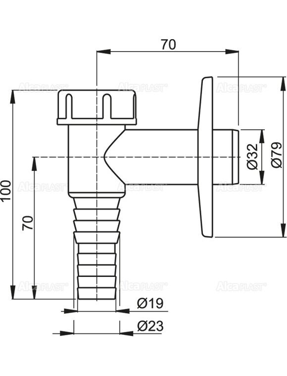 Сухой клапан для предотвращения запахов из канализации Штуцер для шланга 19 и 23 мм Подключение к стоковой трубе 32 мм Сервисное отверстие для легкой чистки Материал: ABS