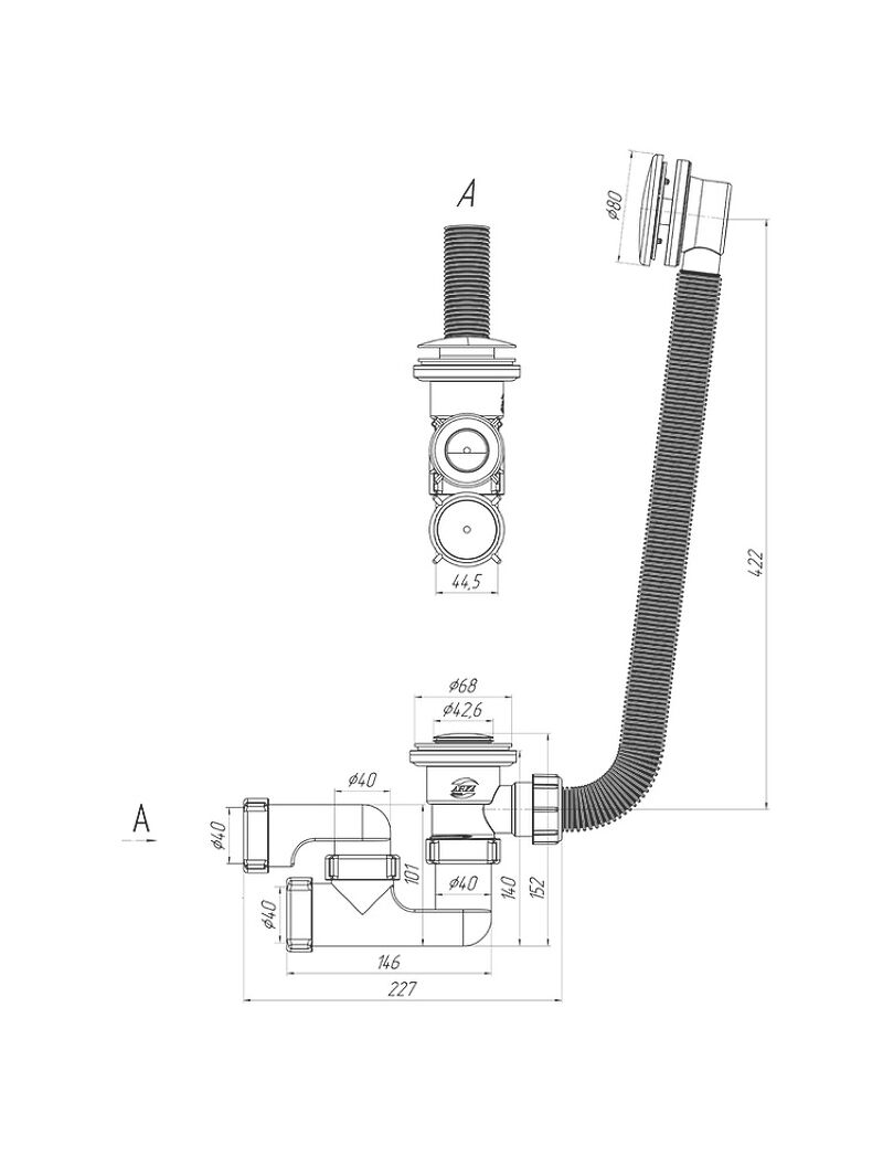 Сифон д/ванны PRIME BLACK универсальный Click Clack Сersanit 64287