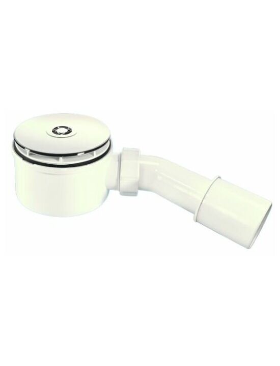 Сифон бутылочный для поддона (сливное отверстие 90-100мм) с 110мм пластиковым выпуском и 113мм металлическим "грибком" (дизайн "Мерседес"); высота трапа 70мм; выход Дн=40/50мм; цвет-хром