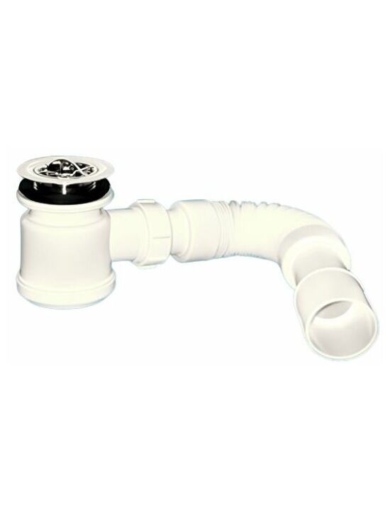 Сифон бутылочный для поддона (сливное отверстие 50-60мм) с пластиковыми 70мм выпуском и 45мм сливной решеткой, раздвижной (L300-500мм) отводной трубой; высота трапа 92мм; выход Дн=40/50мм; цвет-хром