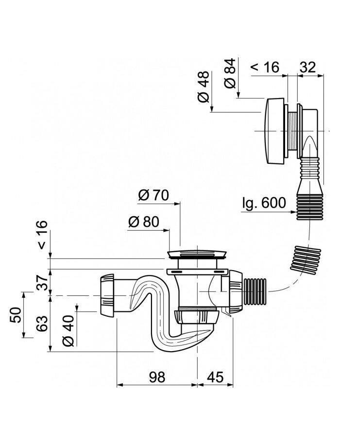 Слив-перелив для ванны Wirquin "SB600" полуавтомат 30717569 серый