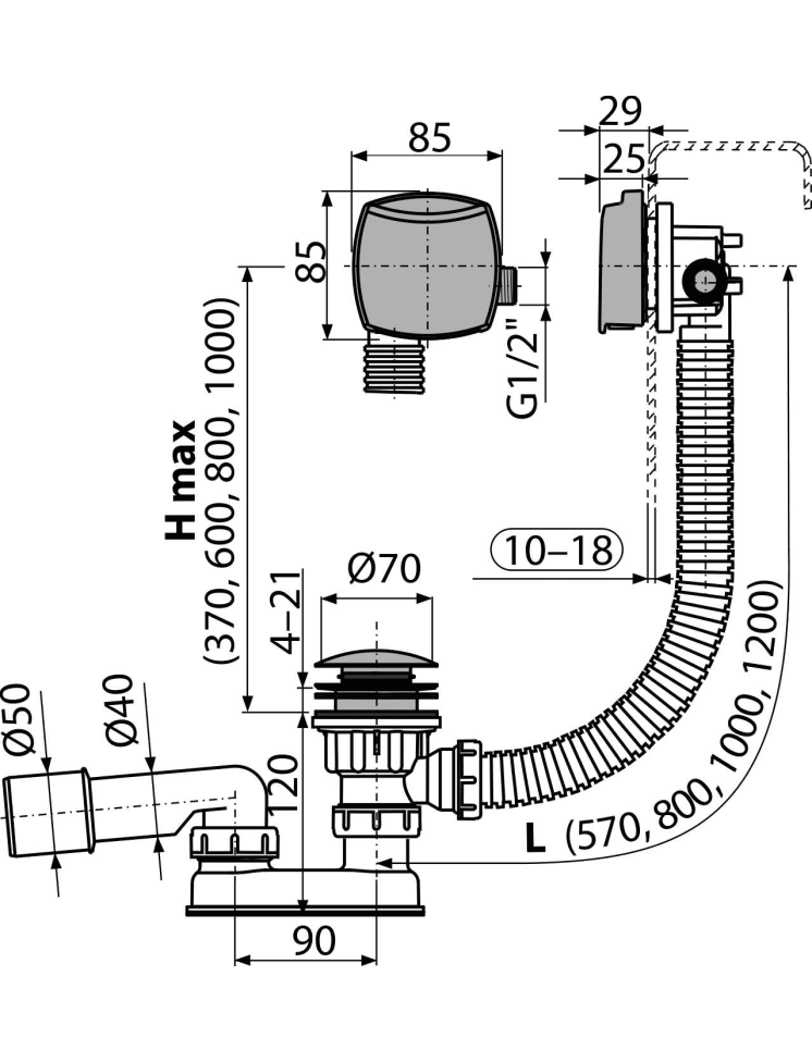 Слив-перелив Alcadrain A509CKM-120 Click-Clack Хром