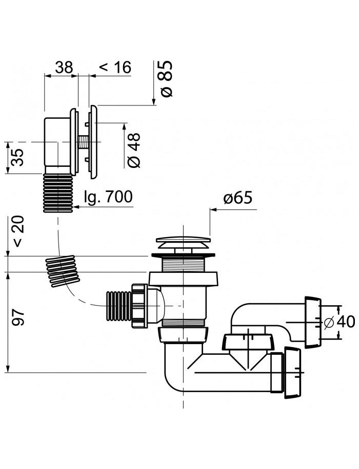 Слив-перелив для ванны Wirquin "QUICK CLAC" 30718585 белый