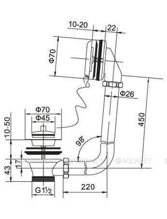 Слив-перелив для ванны с гидрозатвором BB-OVF-02