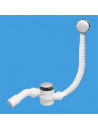 Трап бутылочный (1 1/2"х40мм) для ванн с раздвижным переливом (L330-700ммхD34мм), металлическими 70мм сливной решеткой и пробкой тип-"кнопка"; высота гидрозатвора 50мм; выход Дн=40/50мм; цвет-сатиновый хром. Пропускная способность трапа указана в доп.фото
