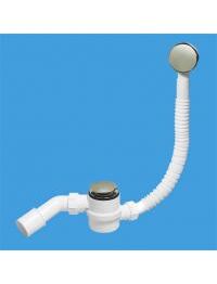 Трап бутылочный (1 1/2"х40мм) для ванн с раздвижным переливом (L330-700ммхD34мм), металлическими 70мм сливной решеткой и пробкой тип-"кнопка"; высота гидрозатвора 50мм; выход Дн=40/50мм; цвет-сатиновый никель.Пропускная способность трапа указана в доп.фот