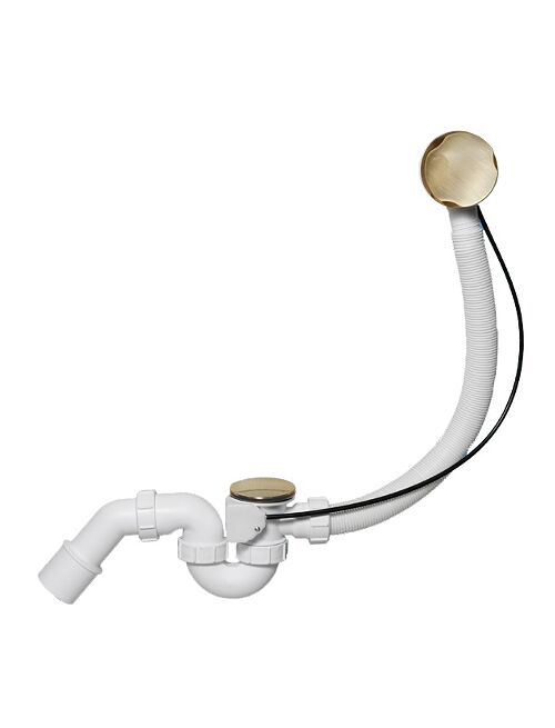 Трап (1 1/2"х40мм) для ванн "стандартный" с автопереливом (L575ммхD34мм), металлическими поворотной головкой, 70мм сливной решеткой и пробкой; выход Дн=40/50мм; цвет-античная бронза