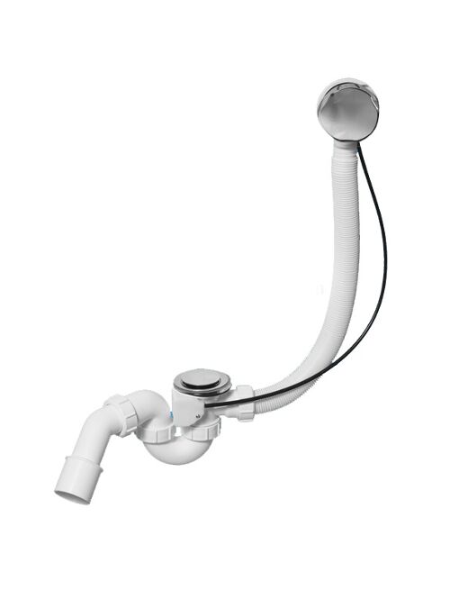 Трап (1 1/2"х40мм) для ванн с автопереливом (L1000ммхD34мм), металлическими поворотной головкой, 70мм сливной решеткой и 50мм пробкой; выход Дн=40/50мм; цвет-хром