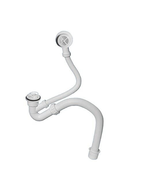 Трап (1 1/2''х40мм) для ванн с переливом (L500ммхD25мм) с пластиковыми решетками, пробкой и гибкой отводной трубой (L500ммхD37,5мм); выход Дн=50мм; цвет-белый
