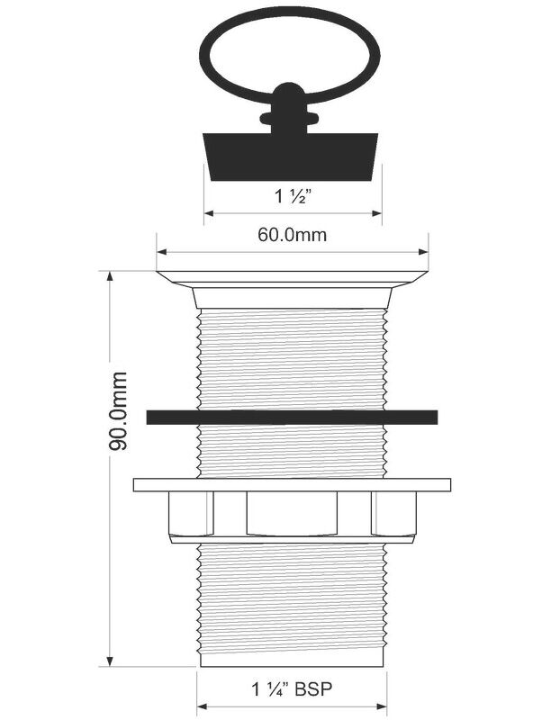Выпуск (60мм нержавеющая сливная решетка) без перелива, с контргайкой и пробкой с круглым держателем; высота 90мм; выход 1 1/4"«папа». Устанавливается на герметик!