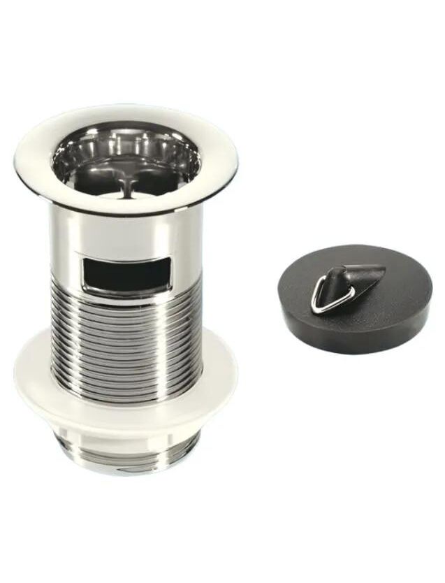 Выпуск (60мм сливная решетка) хромированный с внутренним переливом, контргайкой и пробкой под цепочку; высота 90мм; выход 1 1/4"«папа». Устанавливается на герметик!