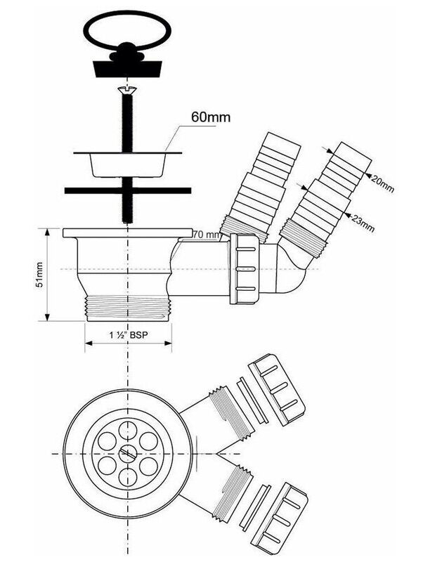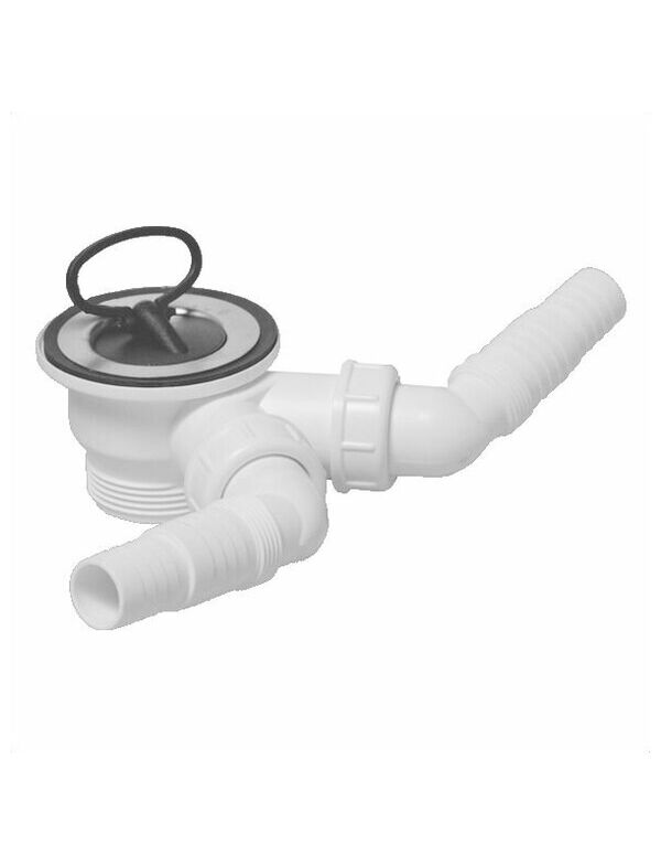Выпуск (60мм нержавеющая решетка) с пробкой и 2-мя адаптерами под углом для слива бытовой техники; выход 1 1/2"«папа»