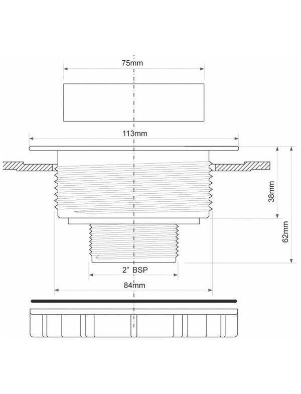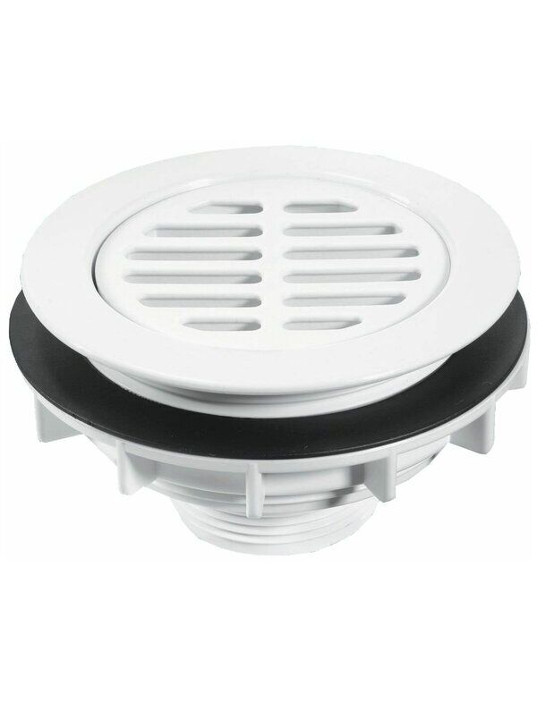 Выпуск (113мм сливная решетка) с фильтрующей решеткой и контргайкой; выход 2"«папа»; цвет-белый