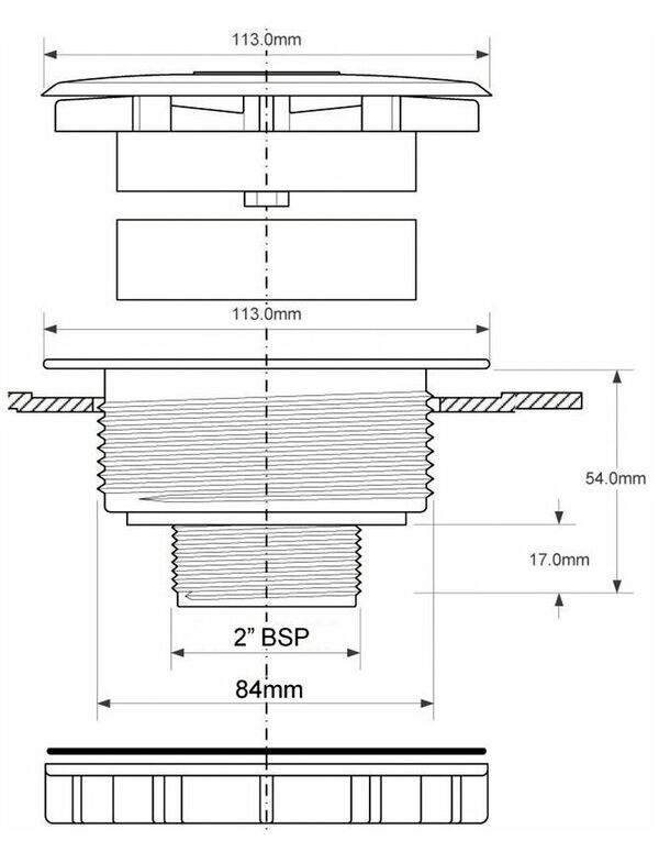 Выпуск (113мм сливная решетка) с фильтрующей решеткой и "грибком" (дизайн "мерседес") для поддонов (сливное отверстие 90-100мм); выход 2"«папа»; цвет-хром