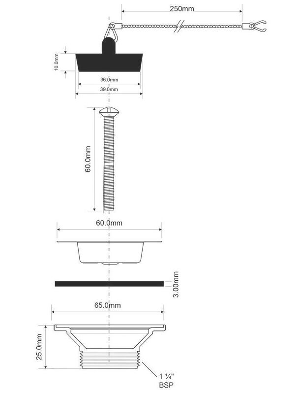 Выпуск металлический (60мм металлическая решетка) с пробкой и цепочкой; выход 1 1/4"«папа»; цвет-античная бронза