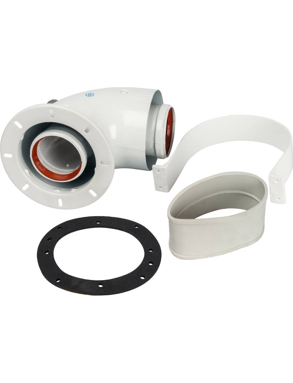 STOUT Элемент дымохода DN60/100 адаптер для котла угловой 90° коаксиальный (совместимый с Bosch, Buderus)(с логотипом)