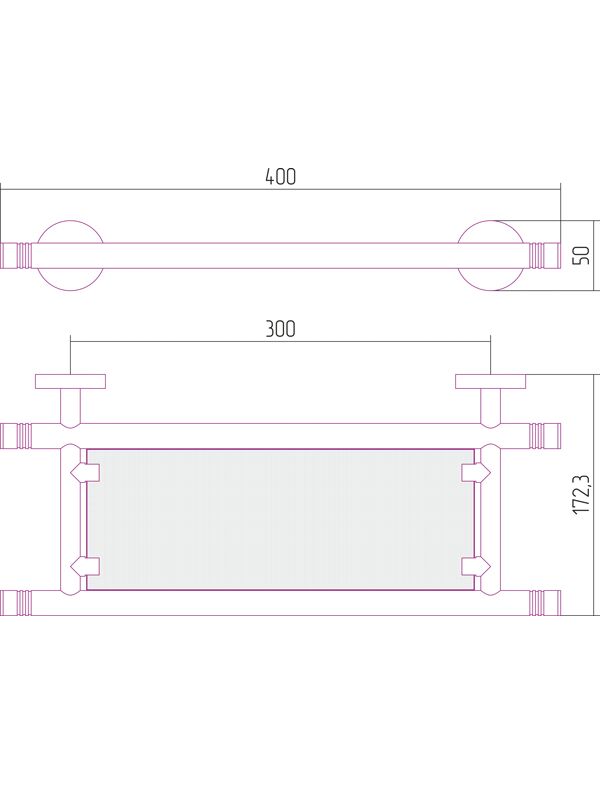 Полка Сунержа КАНЬОН стеклянная / L 400