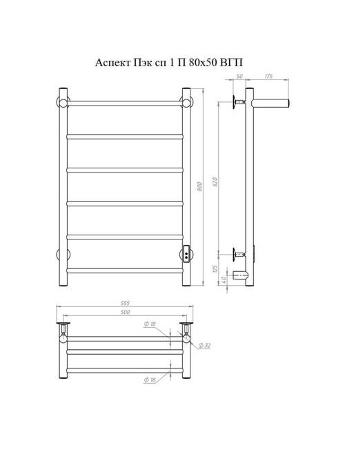 Полотенцесушитель Аспект Пэк сп 1 80х50 черный ВГП